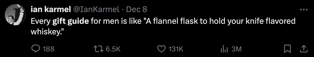 In my many years in food media, I’ve seen firsthand the weight gift guides and their consequent revenue have on a publication’s Q4 performance. (Let’s pour one out for all the commerce writer homies out there.) But I cannot help but see these guides as echoes in a chamber that is, as Harry and Randa at Good Hang describe in their hilarious gift guide newsletter, a “giant Soviet Style Darwinian taste war.”